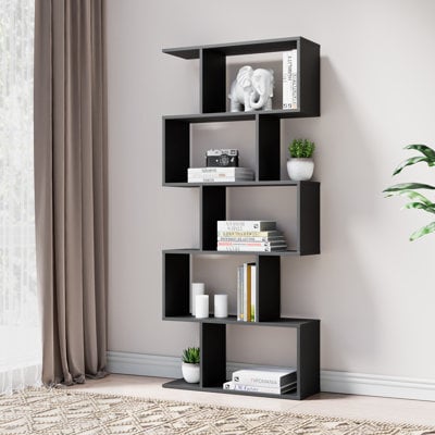 626 H Geometric Bookcase 5 Tier S-Shaped Room Divider Bookshelf
