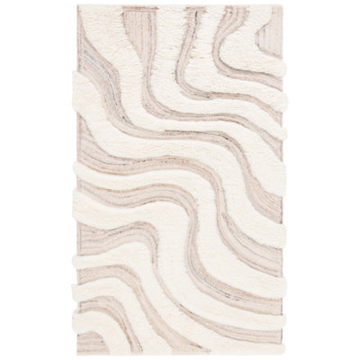 Ankara Abstract Handmade Wool Area Rug in BeigeIvory