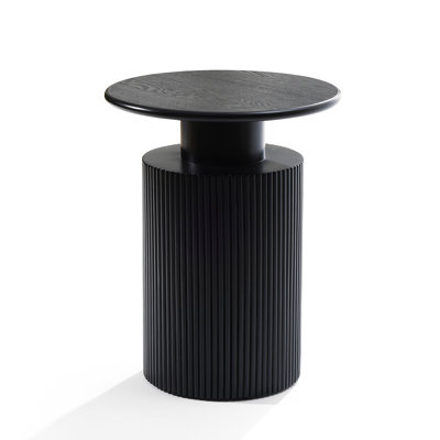 Create an accountThe three-dimensional shape of this side table showcases a simple and modern aesthetic. The round table's cylindrical base has smooth lines and adds overall stability. Its outstanding feature is the charming grooves on the base, which use textures and tones to create an natural sense of symmetry in your space. Its black surface contrasts with the natural wood grain details, which are both visually striking and elegant, perfect for a variety of interior decoration styles.