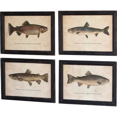 Create an accountThis set of 4 graphic art prints is an easy way to add a little personality to your bare coastal cottage walls. Each keepsake piece depicts a different type of trout and typographic accents underneath that read "the golden trout," "the Rangeley trout," "the brown trout," and "the rainbow trout." The art prints are then matted and framed with wall-mounting hardware included, so you can get right to decorating as soon as they arrive. Why don't you hang your new art prints above the fireplace mantel in the living room or den?