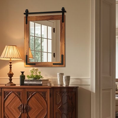 Brunilda Rustic Farmhouse Solid Wood Frame Accent Mirror Decorative Mirror