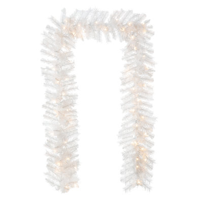 Ernberg 9ft Pre-Lit White Faux Pine Garland with 50 Warm LED Lights and Timer
