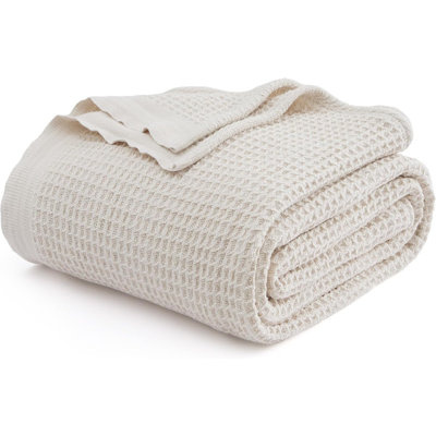 Essential Collection Bedsure 406gsm 100 Cotton Blanket Breathable Waffle Weave Throw Blanket GentleSoft