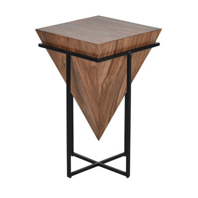 Create an accountThis modish accent table is a piece that will elevate any room in your household with its modern geometric design. Functional and eye-catching, sheesham wood is distressed with chic multicolor discoloration, complemented by a contrasting iron frame. Standing at the perfect height for use as a bedside table or living room accent piece, this is a perfect solution to keep your things within an arm’s reach without disrupting the aesthetic flow of your space. Assembly required.