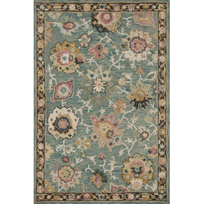 Create an accountBring a burst of boho vibes to your living room or bedroom with this colorful area rug. Taking inspiration from traditional Persian patterns, it features a botanical design with scrolling vines and blooming flowers. Turquoise and beige hues show off a subtle distressed touch. Hand-hooked from wool, it boasts a medium 0.5'' pile height that doesn't trip up your feet or your vacuum in high-traffic areas of your home. Although it has a canvas backing, we recommend pairing it with a rug pad to keep it in place.