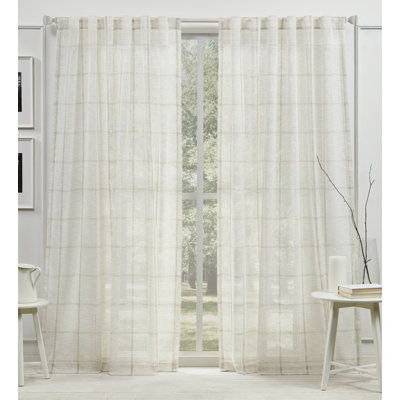 Create an accountThe Lauren Ralph Lauren Rubin sheer curtain panel is lightweight and airy linen-look fabric. The yarn-dyed, woven windowpane pattern on every fabric diffuses light beautifully and offers a classic look. With back tabs and a rod pocket, it can be hung three ways: on a curtain rod up to 1.5" diameter using accounts, the rod pocket, or using clip rings not included. The Lauren Ralph Lauren window collection includes timeless essentials and designs updated with a fresh, modern spirit.