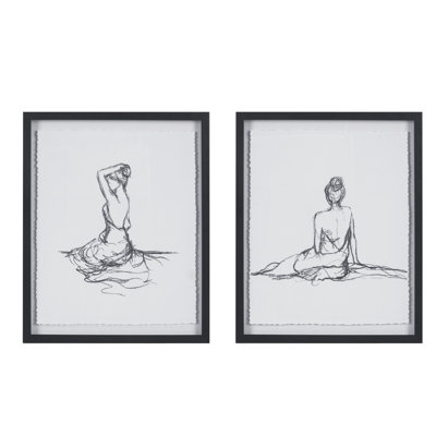 Meisel Feminine Figures Sketch 2-piece Framed Glass and Matted Wall Art Set