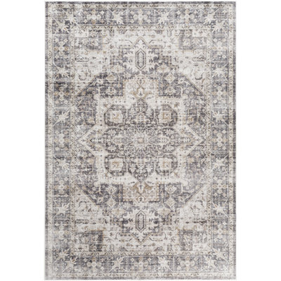 Mittler Oriental Power Loomed Polyester Area Rug in Dark GrayBeige
