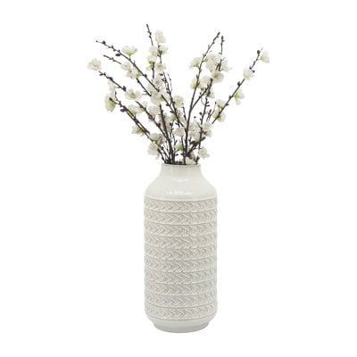 Neutral Textured Ceramic Aztec Vase in Ivory