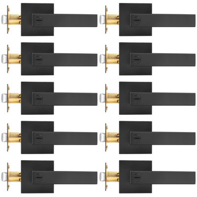 Privacy Door Lever with Square Rosette for Bed and Bath Keyless