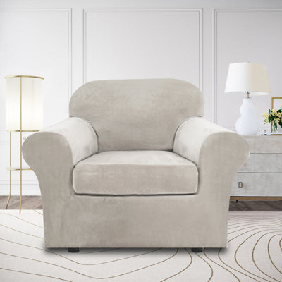 Rich Velvet Stretch 2 Pieces Box Cushion Armchair Slipcover with 1 Cushion Cover Furniture Protector Couch Machine Washable