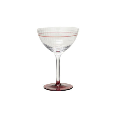 Vintage Reproduction Stemmed Fluted Champagne And Coupe Glass With Hand-Painted Stripe Red Base